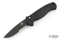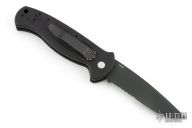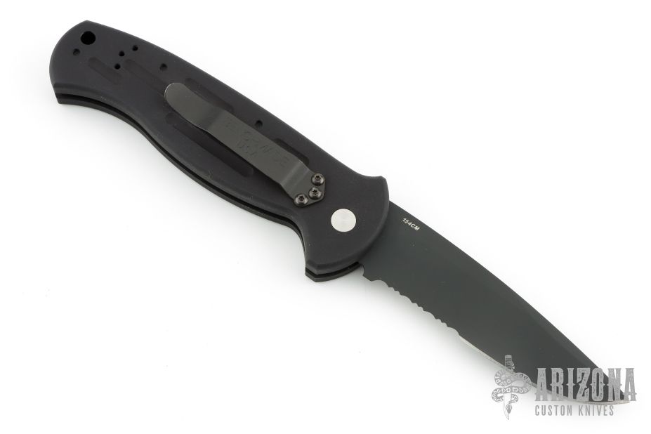 This is a military issue automatic carried by Coast Guard rescue swimmers and authorized in USAF survival kits.  In use by Armed Forces personnel around the world. It features a black partially serrated blade. The handle is black aluminum with tip up or down reversible stainless steel clip. Has a safety on the spine. Excellent condition with original box, sheath and papers.