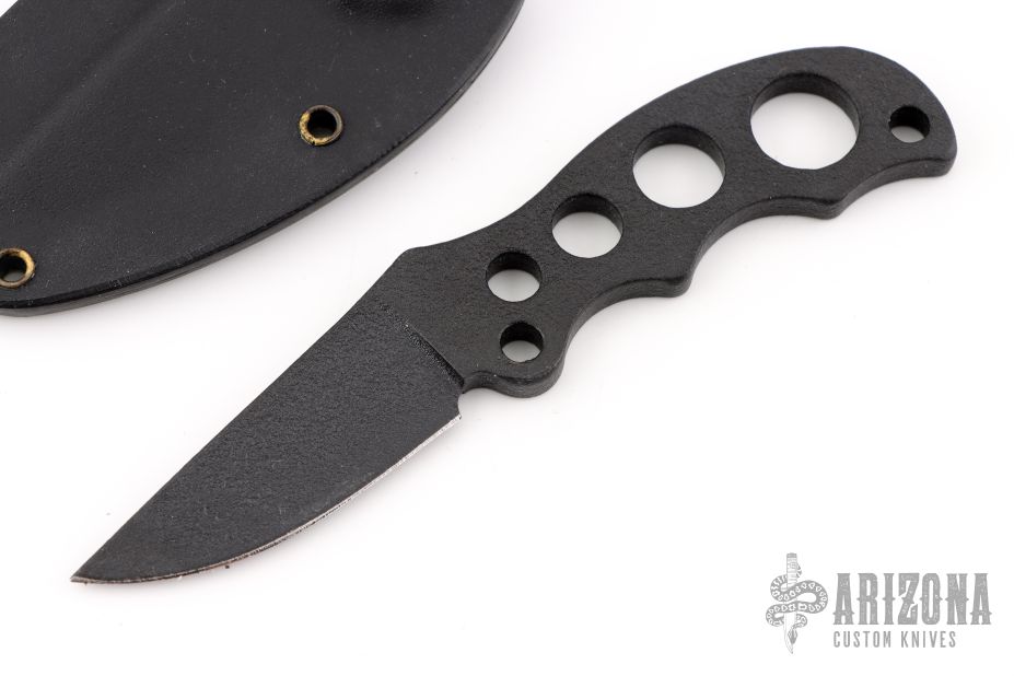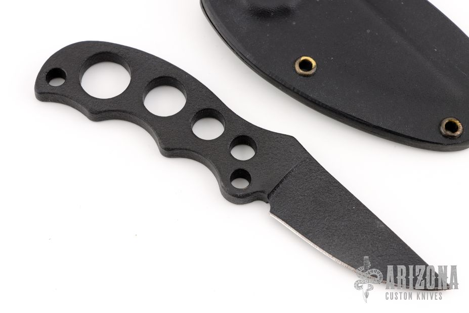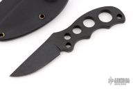 This Assault Shaker by Busse features a black coated clip point blade with .245" blade stock and .895" blade depth. The handle is skeletonized, with lanyard hole in pommel. Comes with a kydex sheath. Excellent Condition.