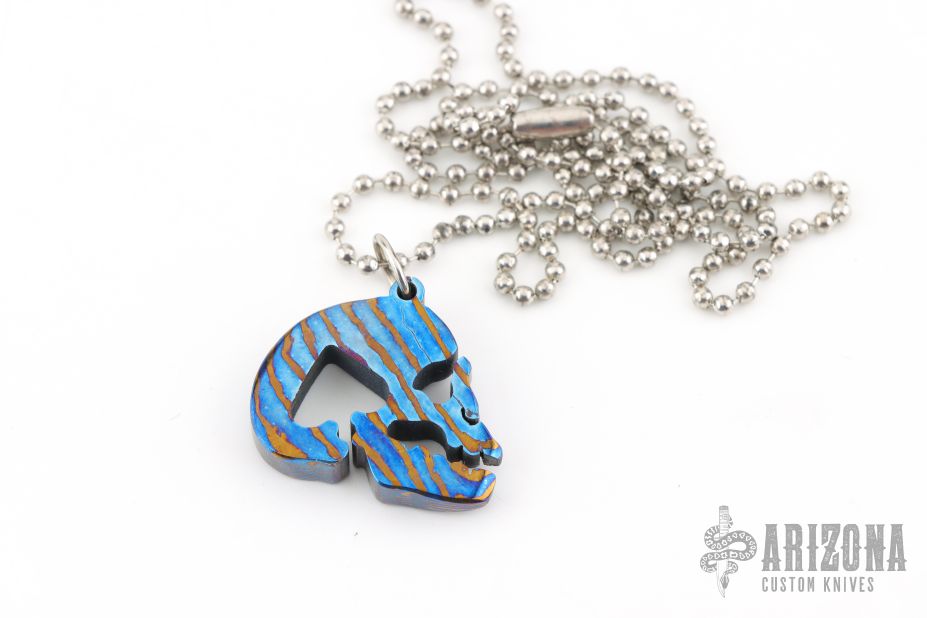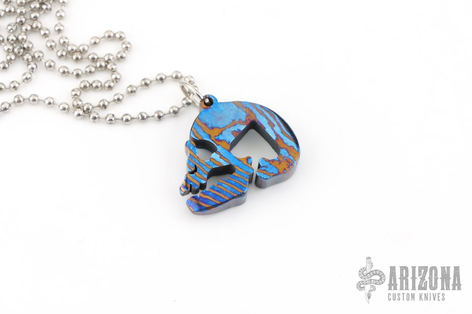 Timascus Skull Necklace with ball chain. New from maker. Comes with original box.