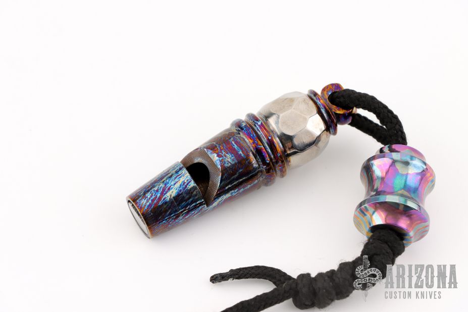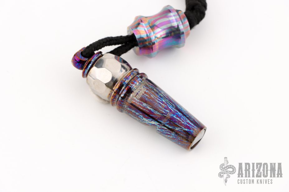 Anodized Titanium Whistle w/ Timascus NiobiuTi Bead by EMA Forge. Comes with original box and card. New from maker.