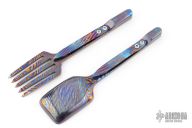 This is a Timascus Fork and Spoon set by EMA Forge. Both have clips. Comes with original box and card. New from maker.
