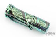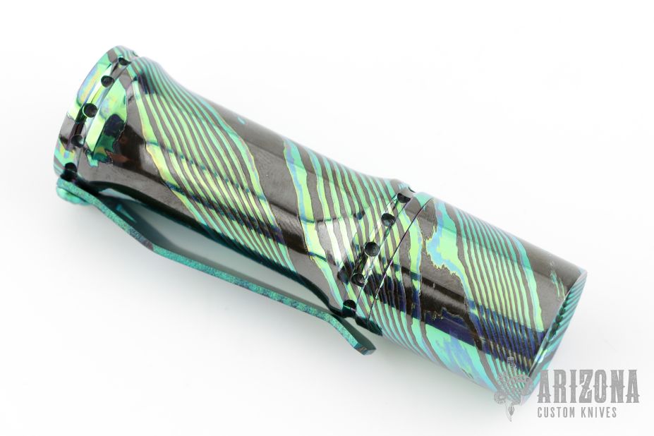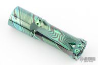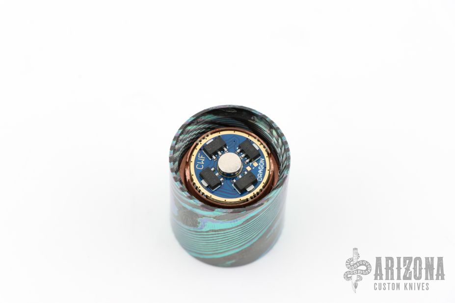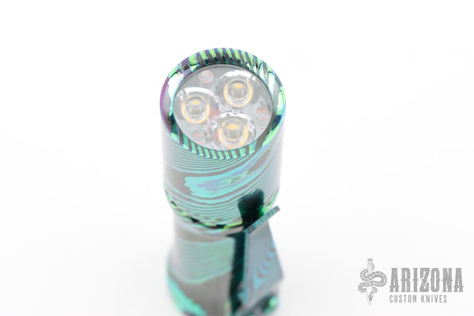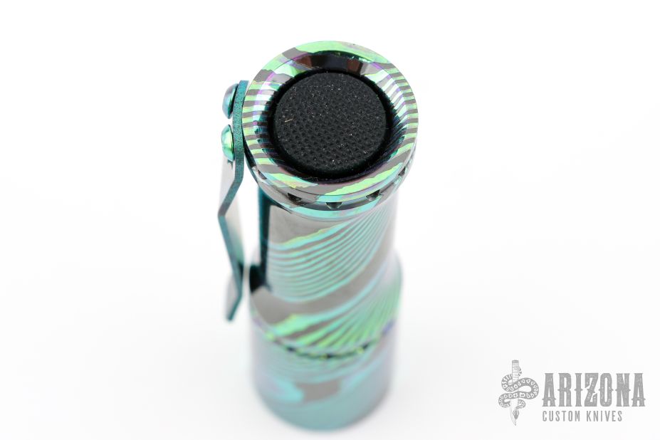 Deadwoods Custom Works Huckleberry Flashlight with ZircuTi body and a laser engraved titanium clip. Comes with small hard case. Excellent Condition. Has a Dragon Driver and Red Secondary.