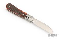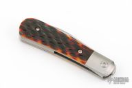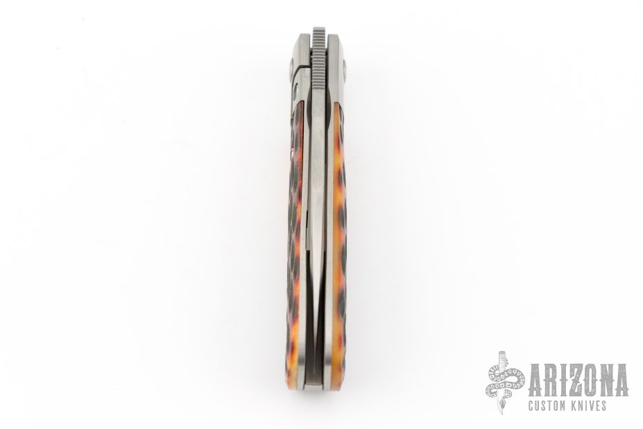 This Swayback Front Flipper by Enrique Pena features a satin finished blade with a front flipper and notched thumbrest. The handle has titanium bolsters, jigged bone scales with a titanium backspacer. Excellent condition. Comes with original box.