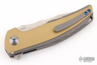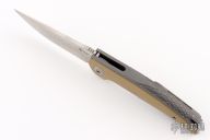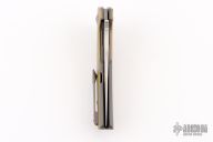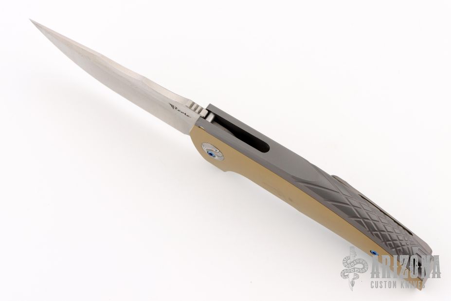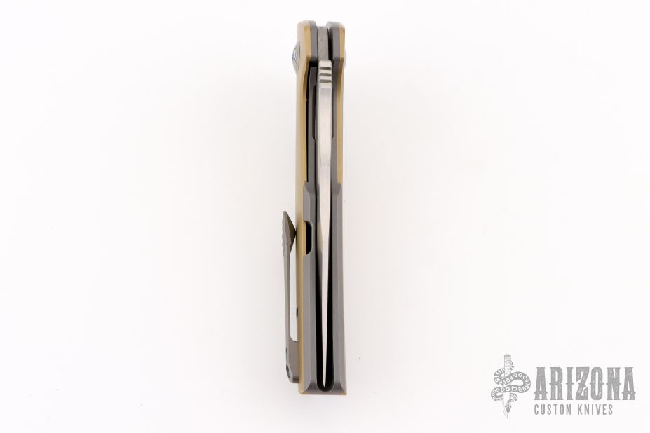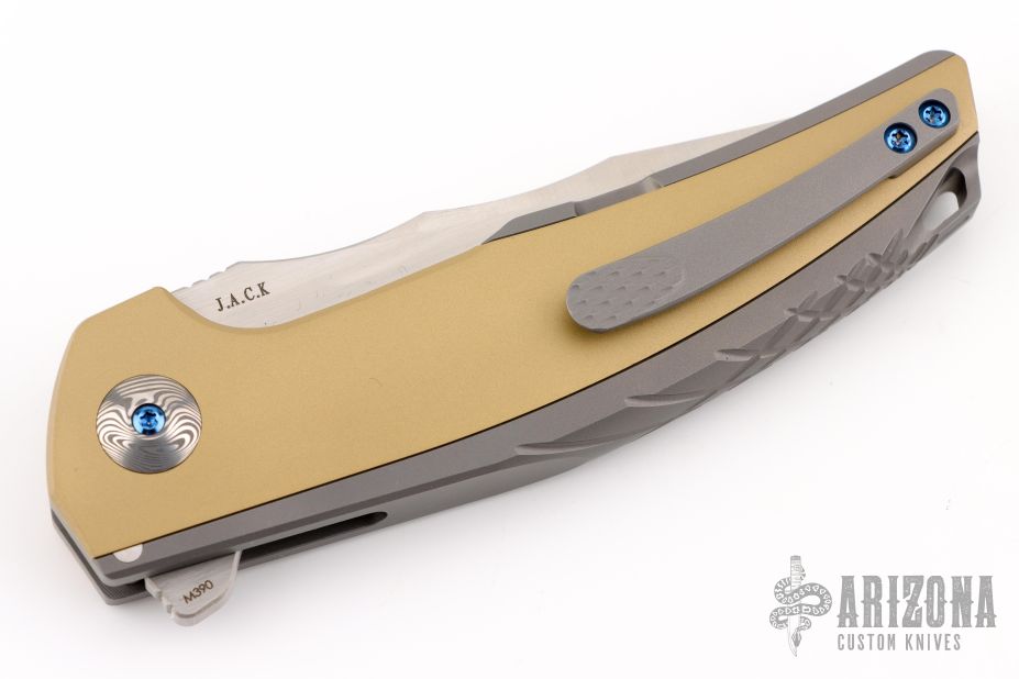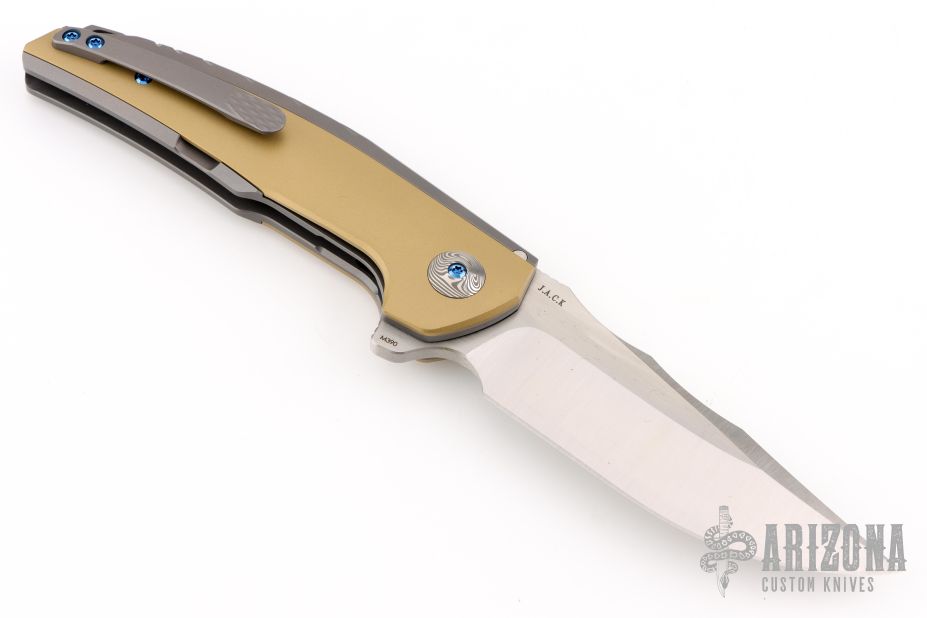 The Reate J.A.C.K. offers a sleek integral folding knife design form Solo Jack Chan. This model is outfitted with an integral gray titanium handle with brass inlays and a satin finished Bohler M390 steel blade. Damasteel pivot collars. It's built with double row ceramic ball bearings for satisfying opening action. Upgrade your EDC with the J.A.C.K. from Reate Knives.