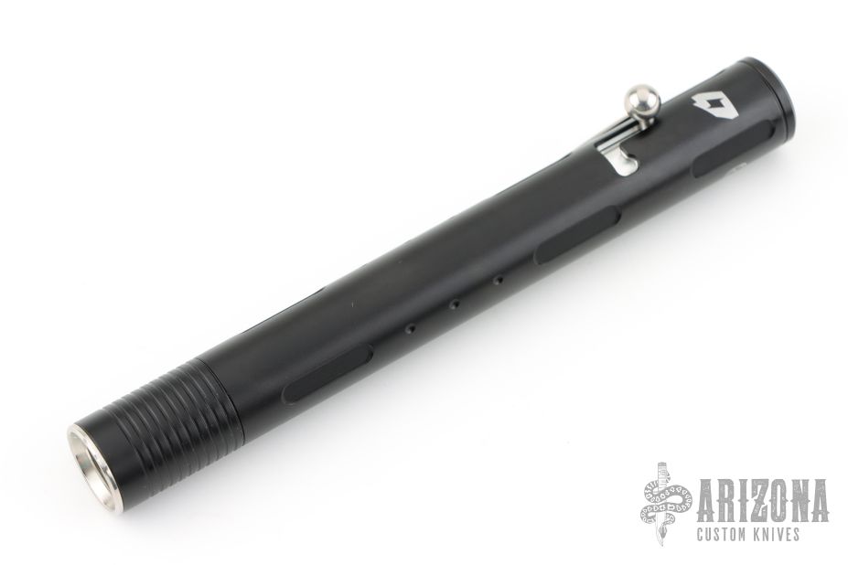 The Bolt Light is a special collaboration between Brian Fellhoelter, Tuff-Writer and FOURSEVENS, with a unique and innovative user-interface. While most flashlights rely on a traditional push-button switch, the Bolt Light uses a sliding bolt mechanism, allowing you to turn the light on and off, or change modes, with an easy and natural swiping motion. With three brightness levels and four special output modes, the Bolt Light is versatile enough to meet the needs of a variety of situations. DIMENSIONS Length: 5.83 inches Diameter: 0.71 inches Weight (without batteries): 2.7 oz LED EMITTER CREE XM-L2 VOLTAGE RANGE 2.7V -8.4V BRIGHTNESS LEVELS Low: 59 lumens, 8 hrs High: 490 lumens, 1.2 hours Strobe: 490 lumens, 2.4 hours SPECIAL MODES S.O.S.: 6 hrs Beacon (High): 15 hours Beacon (Low): 23 hours Moonlight: 1 lumen, 102 hours REFLECTOR Smooth BODY MATERIAL Type-III hard-anodized aircraft-grade aluminum BEZEL MATERIAL Type-III hard-anodized aircraft-grade aluminum LENS MATERIAL Optical-grade glass lens with antireflective coating on both sides. Comes with original packaging. New condition.