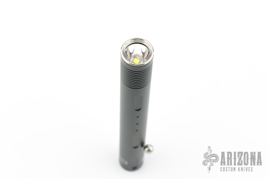 The Bolt Light is a special collaboration between Brian Fellhoelter, Tuff-Writer and FOURSEVENS, with a unique and innovative user-interface. While most flashlights rely on a traditional push-button switch, the Bolt Light uses a sliding bolt mechanism, allowing you to turn the light on and off, or change modes, with an easy and natural swiping motion. With three brightness levels and four special output modes, the Bolt Light is versatile enough to meet the needs of a variety of situations. DIMENSIONS Length: 5.83 inches Diameter: 0.71 inches Weight (without batteries): 2.7 oz LED EMITTER CREE XM-L2 VOLTAGE RANGE 2.7V -8.4V BRIGHTNESS LEVELS Low: 59 lumens, 8 hrs High: 490 lumens, 1.2 hours Strobe: 490 lumens, 2.4 hours SPECIAL MODES S.O.S.: 6 hrs Beacon (High): 15 hours Beacon (Low): 23 hours Moonlight: 1 lumen, 102 hours REFLECTOR Smooth BODY MATERIAL Type-III hard-anodized aircraft-grade aluminum BEZEL MATERIAL Type-III hard-anodized aircraft-grade aluminum LENS MATERIAL Optical-grade glass lens with antireflective coating on both sides. Comes with original packaging. New condition.
