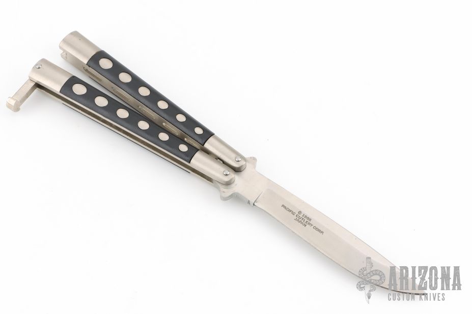 Balisong USA started manufacturing butterfly knives in the late 1970s, then changed its name to Pacific Cutlery in the early 1980s, before finally becoming Benchmade. The earlier knives featured a wide variety of custom blade designs (many of which were hand ground by master knifemaker Jody Samson, well known for making the swords in the movie Conan the Barbarian), as well as a number of exotic inlays for the handles (ivory, prehistoric ivory, scrimshawed ivory, mother-of-pearl, ebony, tropical woods, etc.)