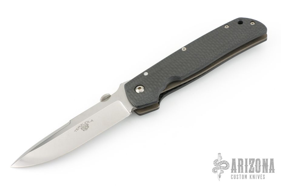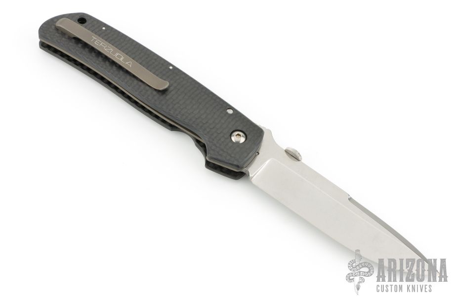 Bob Terzuola was born in Brooklyn, New York and attended New York University. Upon graduation in 1967 he went to Panama as a Peace Corps trainer and later became a jade carver and gemologist in the Motagua River Valley, Guatemala. In 1979, Terzuola began making knives and joined the Knifemakers' Guild in 1981 on an endorsement from Bob Loveless. Terzuola's first knives were fixed blade designs made for soldiers in Guatemala. Later that year moved to New Mexico and began making folding knives. Seeing a need for a knife that could be carried discreetly, he developed a model featuring black micarta for the scales and bead-blasted titanium bolsters. Innovations in desgin for which he coined the term "Tactical Knife". Bob attends many of the largest and well known custom knife shows across the world. Bob Terzuola Knives are known for their trademark design and high quality workmanship. Terzuola's most popular model is the ATCF, a folding knife design. This was his first tactical folding knife, although he also makes it with non-tactical materials. Other knife models that Bob Terzuola is popular for are the 3A, TT-1, Model 7, Eagle Rock 514, TTF3A, Model 26, Starmate, TTF3B, Pathfinder, Century Starfighter, Starmate, Battle Guard, TTF6, Model 18 Combat Master, WEE T, and Battle Mate, just to name a few. Bob Terzuola also designed a very popular knife for Spyderco, the SLIPIT. The SPLIT is made of the finest non-locking tactical folders on the market. Bob Terzuola has authored a book about the design of tactical knives named, 'The Tactical Folding Knife.' When you hear people say that Bob Terzuola literally wrote the book on tactical folding knives, he really did! Many custom tactical knifemakers have his book in their shop, and highly value his opinions and designs. Bob Terzuola has also authored articles about tactical knives and knifemaking for Blade, Soldier of Fortune and other publications.