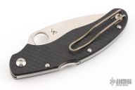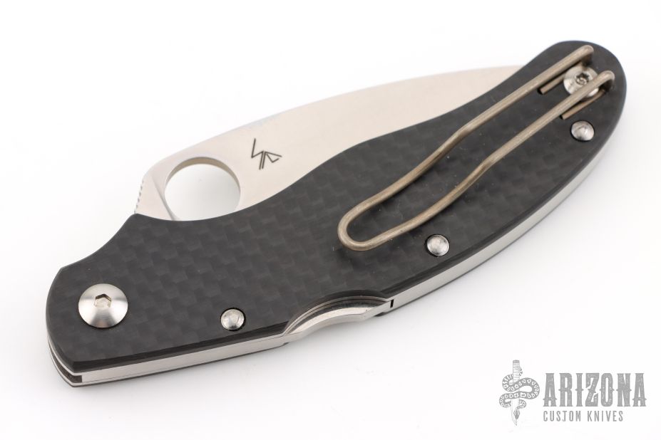 This Caly 3 features a satin finished 420J2 Steel with ZDP-189 core blade with a thumb-hole and notched thumb and index finger rests. The handle has carbon fiber scales, and stainless steel liners, back-spacer and pocket clip. Clip is tip up and is right or left handed reversible. Comes with original box. Has a couple light scuffs, excellent condition otherwise.