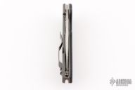 This Domino Flipper has a satin finished CTS-XHP stainless steel drop/spear point blade with thumb hole and notched thumbrest. Handle is stonewashed titanium with A-side red/black carbon fiber pattern G-10 overlay, 4-way reversible black stainless steel clip, and lanyard tube pin. Comes with original box and papers. New condition.
