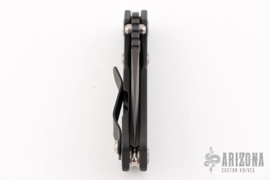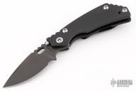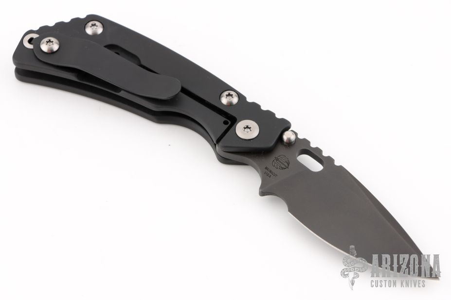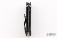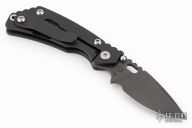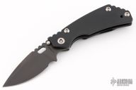 This PT by Mick Strider features a black PVD blade with notched thumbrest and thumbhole. The handle has a DLC titanium frame with matching tip up clip. New condition.