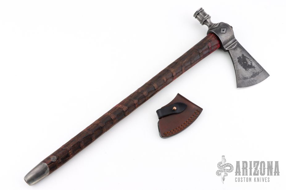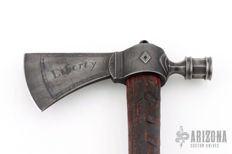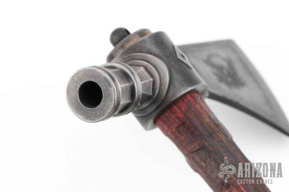 The Head: Traditional Pipe Hawk head shape investment cast from 6150 tool steel featuring a funtional bowl and given a dark patinated finish.