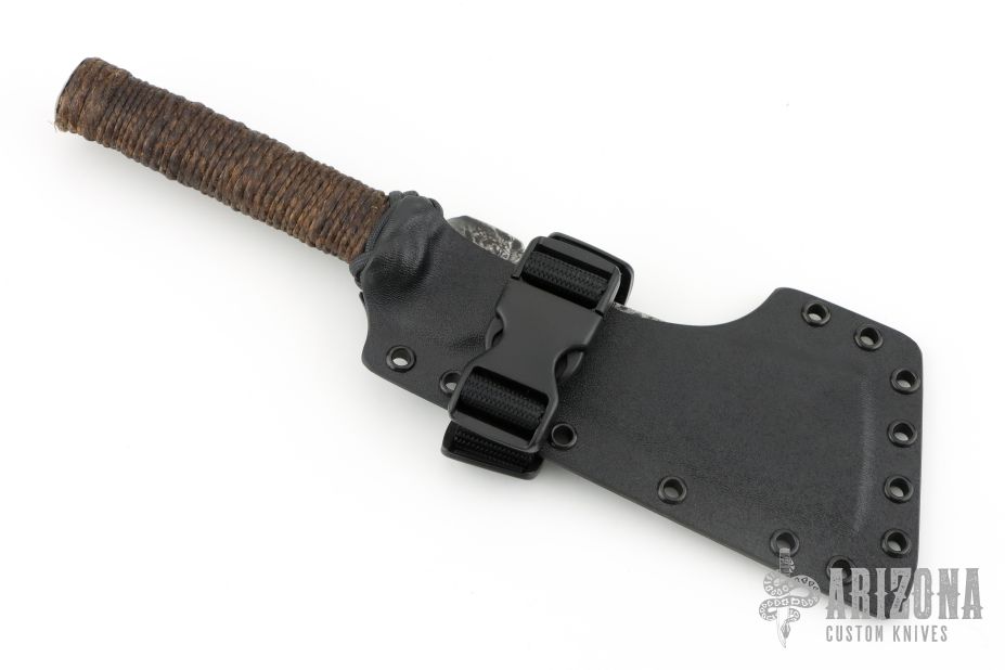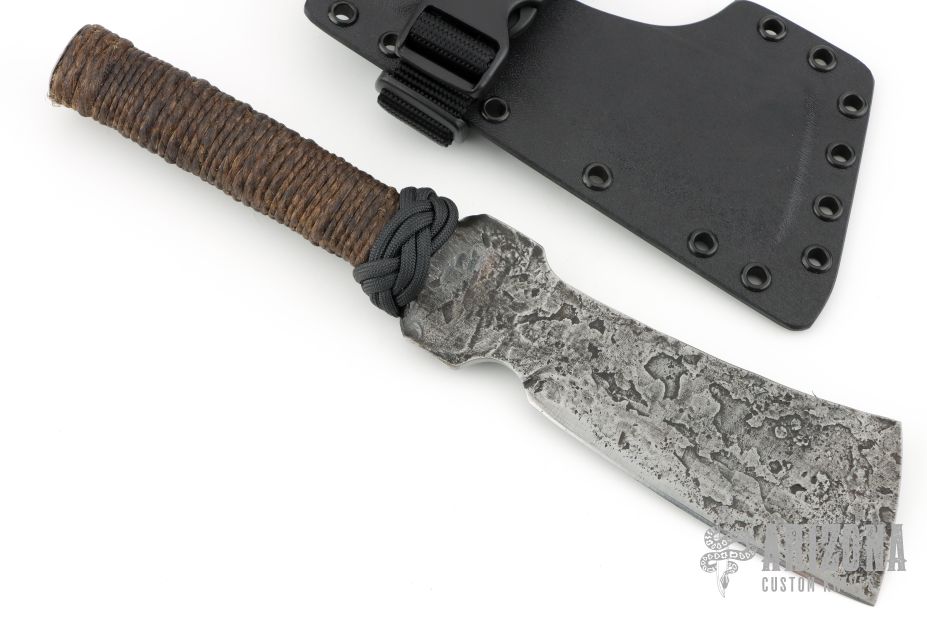 This Chopper by James Helm features a hand forged sheepsfoot blade with .157" blade stock and 2.12" blade depth, hidden tang construction. The handle has black paracord/hemp wrap. Comes with a kydex sheath. Hollow handle. New from maker!