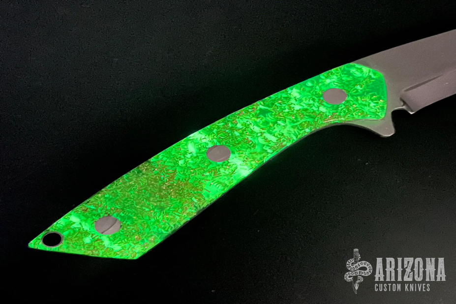 This Knife's Special Hybrid Resin Handle that glows in the dark is filled with Mr. Arakawa's innovative spirit and creativity in his approach to knife making.