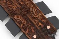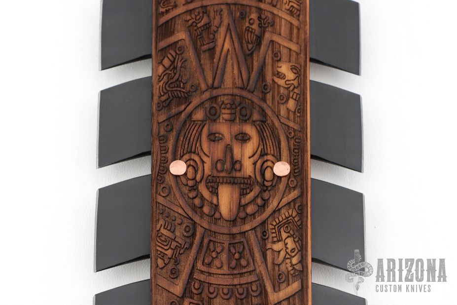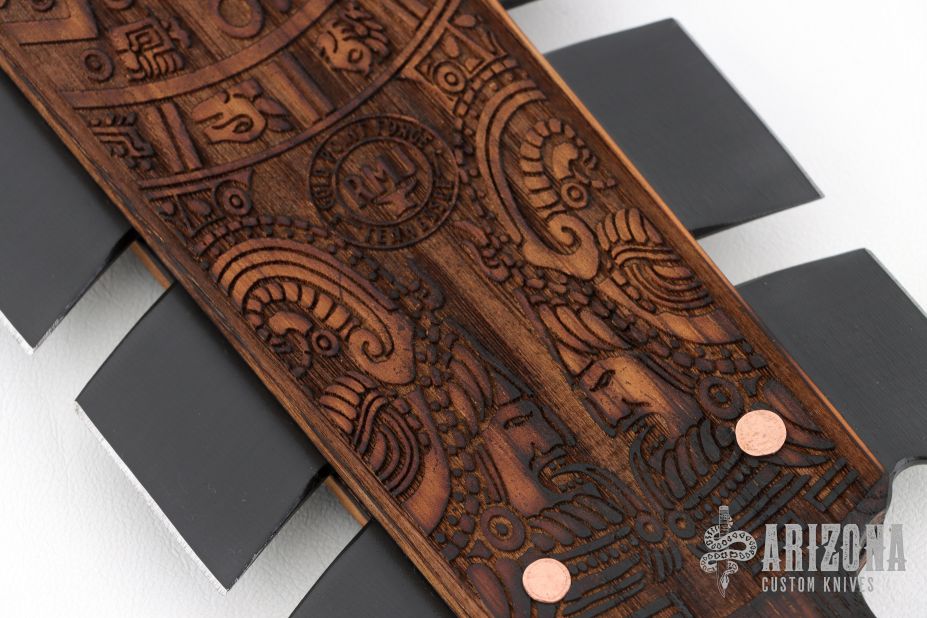 This Aztec Macuahuital by Ryan Johnson features a laser engraved hickory handle with a steel blade on both sides that is peened to the wood with copper pins. What a devastating tool! Not much else to say about this one except it's freaking cool! New from maker!