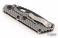 In 1988, he began making specialized knives for use by the military. This turned out to be fortunate turn of events, both for Mick and for the knife using world at large. Mick’s approach was to not get burdened by the weight of past designs. He started with a tabula rasa, a clean slate, informed only by his own experiences and knowledge of what a soldier needed in a knife. The knives he made didn’t look like the hunter-inspired knives seen in most PXs; instead they were almost brutish in their functionality: beefy, solid, and with unbreakable ¼” stock full tangs. These knives were the first indication of his innovative approach: in addition to their utilitarian design, the knives carried a subdued finish and subdued sheaths. No one carrying a Strider knife was going to be spotted because of sunlight glinting off of polished steel or a glossy leather sheath. Soldiers, policemen, and other men going into harm’s way couldn’t buy them fast enough. Mick sampled some good ideas, but made them great. For instance, he was not the first to wrap a knife handle with paracord, but he was the first to do it in a way that was tough enough for sustained infantry use. His knife line grew over the following years to include different varieties of fixed blades, all distinctive and many with specialized uses. But constant in all of them was a disregard for convention, and a desire to try new ideas. An example of this was the Ajax – it featured a very wide blade surface clearly designed to inflict damage. It drew on the weapons carried by Roman legionnaires, yet was modern and usable in the 21stCentury battlefield. Mick also worked on his technical skills, always striving to become better at the physical craft. At the 2002 Blade Show, a group of the best tactical knifemakers in the country decided to compete with each other to produce the most innovative and interesting fixed “battle blade” at the show. Mick’s entry, an incredible integral knife made out of ½” titanium stock with a zippered composite blade, gorgeous handles, and integral guard was the unanimous winner, and effectively retired the competition.