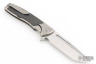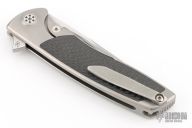 This full size EVO Flipper from Brian Nadeau features a belt satin finished blade, thumbhole, flipper and notched thumbrest. The handle is comprised of a bead blasted titanium frame with carbon fiber inlays, satin titanium tip up clip. Rides on bearings, nice detent, lockup and blade seating, stainless lockface insert. Comes with original box. Has scuffs and some light scratches, great condition otherwise.