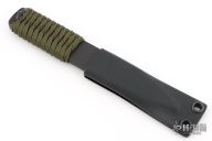 In 1988, he began making specialized knives for use by the military. This turned out to be fortunate turn of events, both for Mick and for the knife using world at large. Mick’s approach was to not get burdened by the weight of past designs. He started with a tabula rasa, a clean slate, informed only by his own experiences and knowledge of what a soldier needed in a knife. The knives he made didn’t look like the hunter-inspired knives seen in most PXs; instead they were almost brutish in their functionality: beefy, solid, and with unbreakable ¼” stock full tangs. These knives were the first indication of his innovative approach: in addition to their utilitarian design, the knives carried a subdued finish and subdued sheaths. No one carrying a Strider knife was going to be spotted because of sunlight glinting off of polished steel or a glossy leather sheath. Soldiers, policemen, and other men going into harm’s way couldn’t buy them fast enough. Mick sampled some good ideas, but made them great. For instance, he was not the first to wrap a knife handle with paracord, but he was the first to do it in a way that was tough enough for sustained infantry use. His knife line grew over the following years to include different varieties of fixed blades, all distinctive and many with specialized uses. But constant in all of them was a disregard for convention, and a desire to try new ideas. An example of this was the Ajax – it featured a very wide blade surface clearly designed to inflict damage. It drew on the weapons carried by Roman legionnaires, yet was modern and usable in the 21stCentury battlefield. Mick also worked on his technical skills, always striving to become better at the physical craft. At the 2002 Blade Show, a group of the best tactical knifemakers in the country decided to compete with each other to produce the most innovative and interesting fixed “battle blade” at the show. Mick’s entry, an incredible integral knife made out of ½” titanium stock with a zippered composite blade, gorgeous handles, and integral guard was the unanimous winner, and effectively retired the competition.