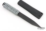 In 1988, he began making specialized knives for use by the military. This turned out to be fortunate turn of events, both for Mick and for the knife using world at large. Mick’s approach was to not get burdened by the weight of past designs. He started with a tabula rasa, a clean slate, informed only by his own experiences and knowledge of what a soldier needed in a knife. The knives he made didn’t look like the hunter-inspired knives seen in most PXs; instead they were almost brutish in their functionality: beefy, solid, and with unbreakable ¼” stock full tangs. These knives were the first indication of his innovative approach: in addition to their utilitarian design, the knives carried a subdued finish and subdued sheaths. No one carrying a Strider knife was going to be spotted because of sunlight glinting off of polished steel or a glossy leather sheath. Soldiers, policemen, and other men going into harm’s way couldn’t buy them fast enough. Mick sampled some good ideas, but made them great. For instance, he was not the first to wrap a knife handle with paracord, but he was the first to do it in a way that was tough enough for sustained infantry use. His knife line grew over the following years to include different varieties of fixed blades, all distinctive and many with specialized uses. But constant in all of them was a disregard for convention, and a desire to try new ideas. An example of this was the Ajax – it featured a very wide blade surface clearly designed to inflict damage. It drew on the weapons carried by Roman legionnaires, yet was modern and usable in the 21stCentury battlefield. Mick also worked on his technical skills, always striving to become better at the physical craft. At the 2002 Blade Show, a group of the best tactical knifemakers in the country decided to compete with each other to produce the most innovative and interesting fixed “battle blade” at the show. Mick’s entry, an incredible integral knife made out of ½” titanium stock with a zippered composite blade, gorgeous handles, and integral guard was the unanimous winner, and effectively retired the competition.