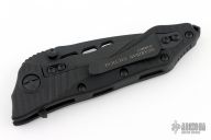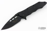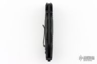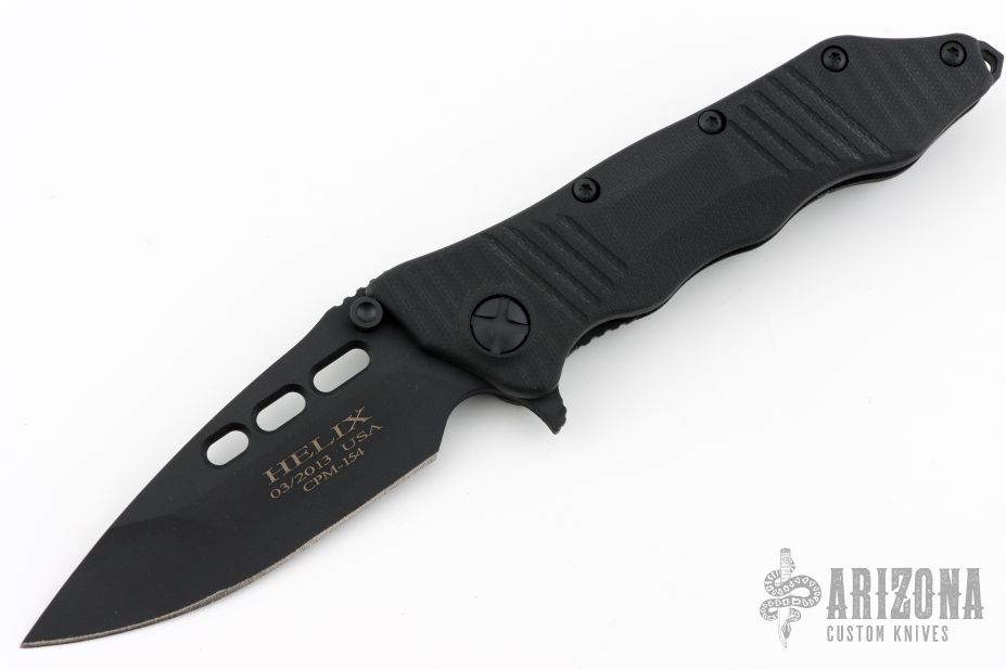 This Helix framelock flipper by Guardian Tactical features a black blade with dual thumbstuds, flipper, and notched thumbrest. The handle has a black G-10 frame, black titanium backspacer and tip up stainless steel clip. Nice detent, lockup and blade seating. #0067 on clip and dated 03/2013. Comes with original box papers and pouch. Excellent condition.