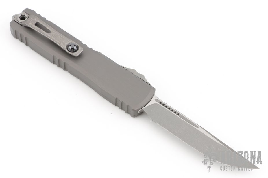 As the flagship model of the Microtech® OTF lineup, this is the final generation of the Ultratech®.  The ZBP Ultratech sets the standard for Out-The-Front technology and this one is sure to please with multiple upgrades. These Zero Blade Play Ultratech's have M390MK blades and titanium Torx hardware. They have milled titanium pocket clips with ceramic balls, and the new titanium glass breaker. The contoured chassis handle provides a lighter and more ergonomic feel and comes in a smooth, flat finish.