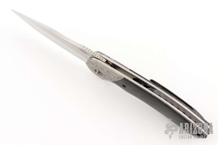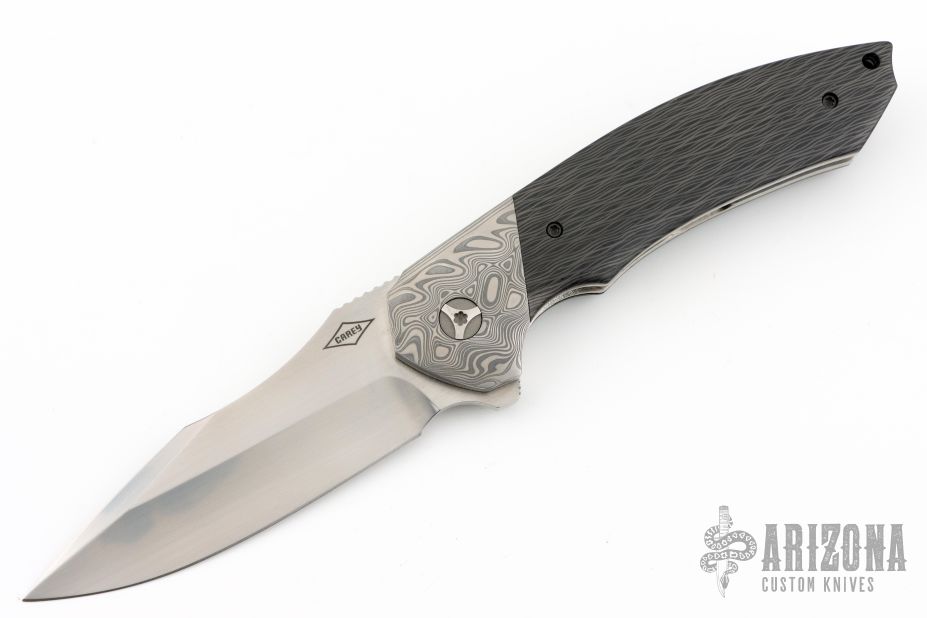 "My name is Peter Carey and I've been making custom knives since 1997, specializing in Tactical Folders and Dress Tactical Folders, I also make Fixed Blade Tacticals, Hunters and Utility knives. Current blade steels are CPM154, S35VN, Stainless steel Damascus from various makers and Stellite 6K. I prefer high tech man made handle materials like Carbon Fiber, Titanium, Zirconium and G10. For Dress Tacticals I use Pearl, Mammoth Ivory, Exotic woods and MokuTi or Timascus. All my folders have custom pocket clips designed specifically for each model, also a custom pivot of my design, "The Original Carey Pivot". I make all my knives with my hands using manual machines in my shop from designs I've drawn by hand. I strive to make the best knife I possibly can with the best materials money can buy. Knives are one of man's oldest and most useful tools, I think everyone should own one or two!"