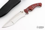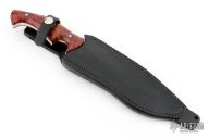 This Machalaphim by Walter Brend features a hollow ground mirror polished multi-ground blade with satin finished flats, false top edge, .271" blade thickness and 1.858" blade depth, full tang with stabilized and dyed maple burl scales with star mosaic pins. Beautiful work. Includes a black leather sheath by Chattanooga Leatherworks. New from maker at the 2025 Blade Show.
