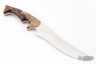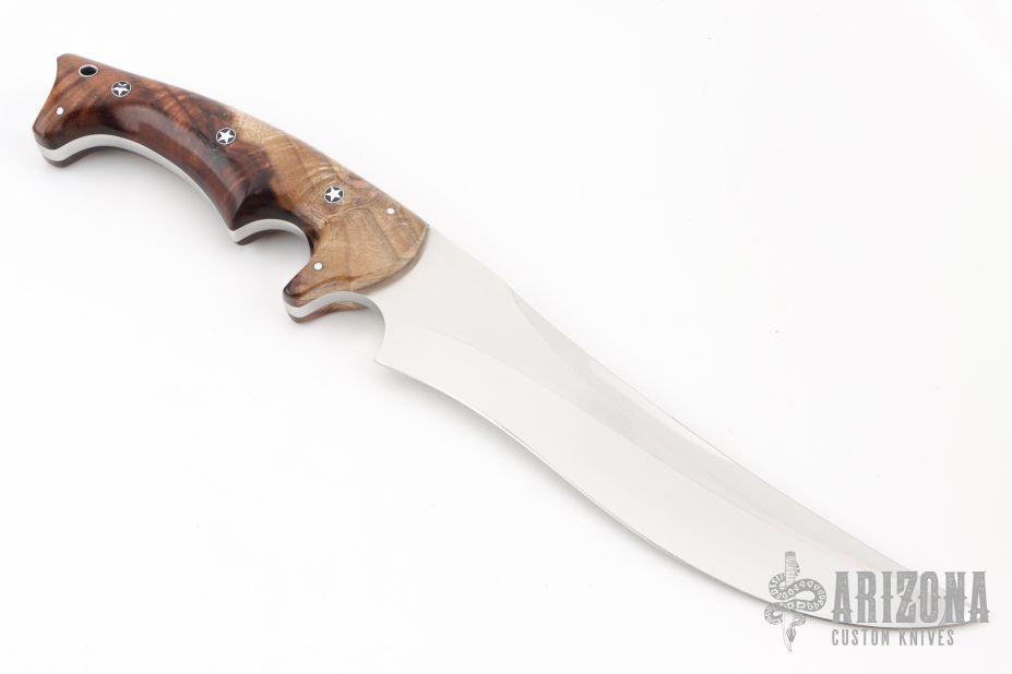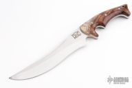 This SID by Walter Brend features a hollow ground mirror polished blade with satin finished flats, sharpened top edge, .239" blade thickness and 1.882" blade depth, full tang with two-tone maple scales with star mosaic pins. Beautiful work. Includes a black leather sheath by Chattanooga Leatherworks. New from maker at the 2025 Blade Show.