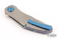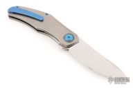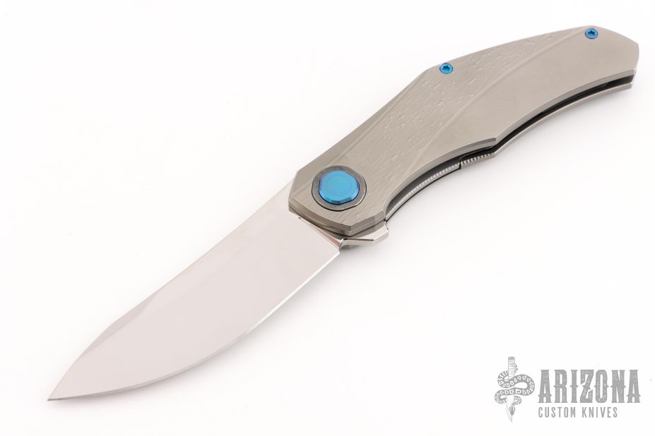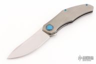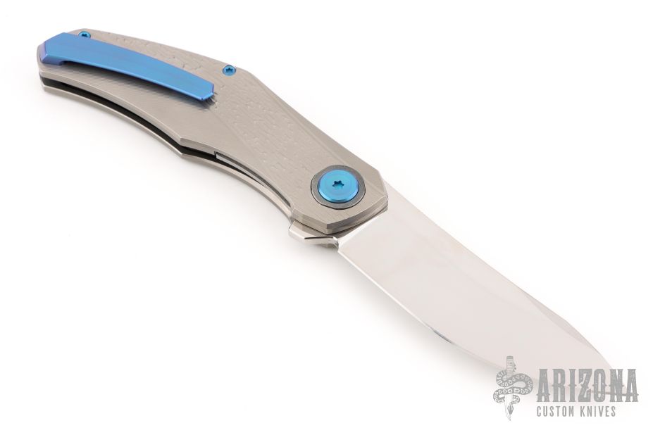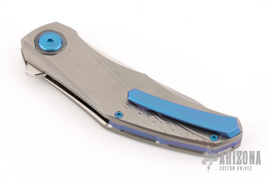 This Renegade by Holt Bladeworks features a near mirror polish tumbled blade with a notched thumbrest and flipper tab. The handle features a blizzard titanium frame with an andodized titanium tip up pocket clip with hidden hardware. Nice detent, lock up and blade seating. Includes the original zipper case, and cards. New from maker at the 2025 Blade Show!