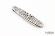 This Slipjoint by Mike Vagnino features a hand rub satin finished blade with nail nick. The handle has engraved stainless steel covers with a stainless steel spring. Has half-stop, flush in all positions. Comes with velcro case. Has light scratches, otherwise excellent condition.