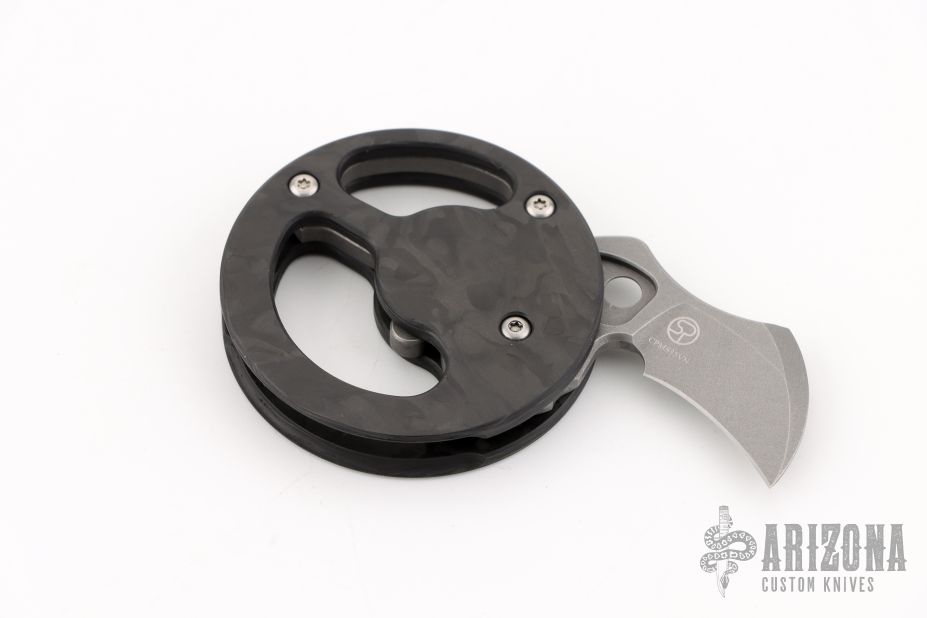 The Coin Claw is one of the designs for which Serge Panchenko is best known. It's sized just over an American Silver Dollar at 2" in diameter with a 1.125" hawkbill blade. The blade is made from CPM-S35VN stainless steel with a stonewashed finish. It's an automatic knife with a strong detent and very unique action. The handle is made from stonewashed titanium with a 6Al4V titanium backside with stainless steel Torx screws holding it all together. If you want a simple everyday carry blade or neck knife that is unique, utterly well-built, and sure to be a talking point, look no further than the Mid-Tech Coin Claw Gen 5 AUTO folder.