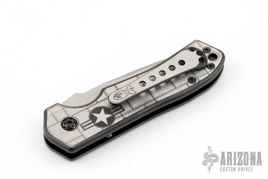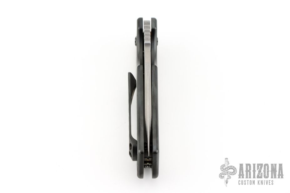 "I am a folder maker. While there will always be the occasional fixed blade, folders are my passion. The steels I enjoy working with include CPM154, ATS-34, 440C, S30V, and Stainless Damascus from Devin Thomas. All of the metal parts on my knives that can be Titanium are Titanium including frames, liners, thumbstuds, bolsters, clips and spacers. Pretty much everything except for the blade. I often anodize a substantial portion of my titanium, and can get a deep green that few makers succeed at. As far as handle materials go, I mostly use Carbon fiber, G10, or Micarta. I use large bronze pivot bushings in all of my folders, and either Nylatron or Bronze washers. All of my parts are made in-house except the screws. I have an old Bridgeport Mill, an older Logan Lathe (1943), a Hardcore grinder, and various other tools, lots of them made by myself. I also do all of my own Heat treating in an EvenHeat Oven." My knives have won several major awards, including Best Tactical Folder at the Blade Show 2011.