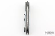 This Front Flipper Linerlock Folder by Tim Bernard features a Mosaic Damascus blade with notched thumbrest and front flipper. The handle has dovetailed zirconium bolsters, fossil walrus ivory covers, blasted titanium liners with textured spines, notched stainless steel backspacer, zirconium tip up clip. Nice detent, lockup and blade seating. Comes with a leather slip sheath and COA. New from maker at the 2025 Blade Show!