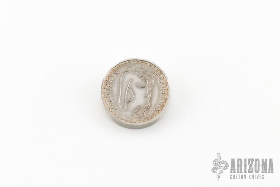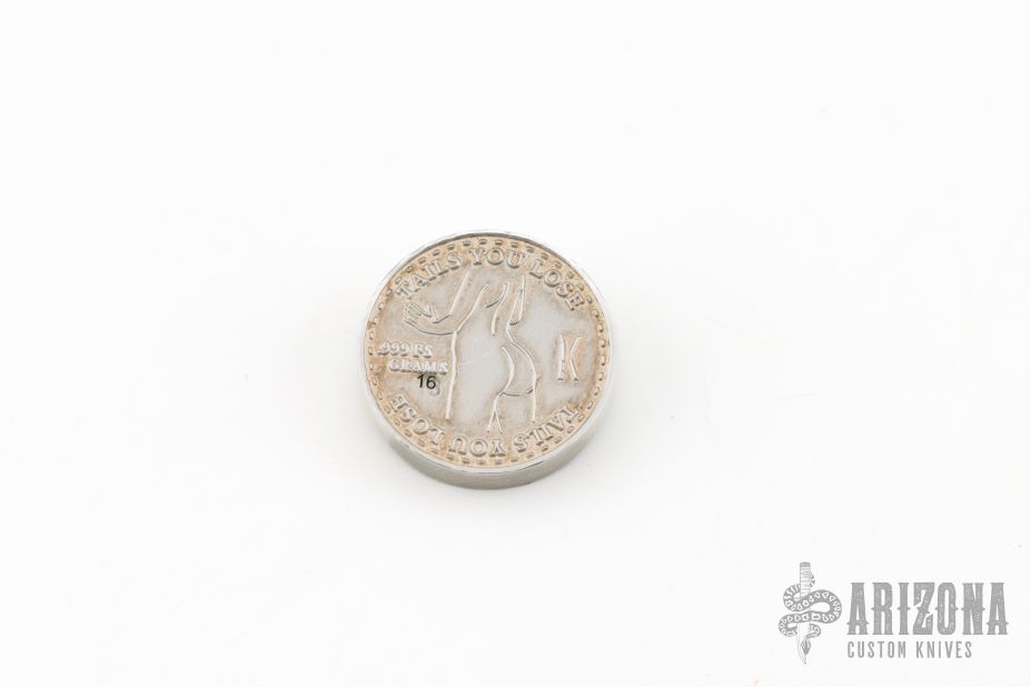 Kopis Designs Heads I win, Tails you lose Limited edition silver coin, number sixteen. Has patina. Excellent condition. 1/2oz coin, .875"x.180".