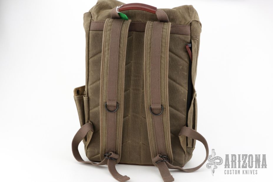 A men’s backpack made from waxed-canvas and leather. The RuckSac is great for daily commutes and everyday use. This backpack features an internal sleeve for 15” laptops, collapsible side pockets, and a little over 20 liters of capacity. The straps and back of the bag are padded for a comfortable carry. Made in the USA with a lifetime guarantee.
