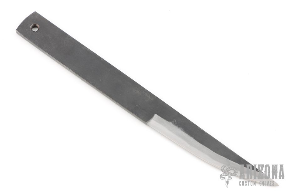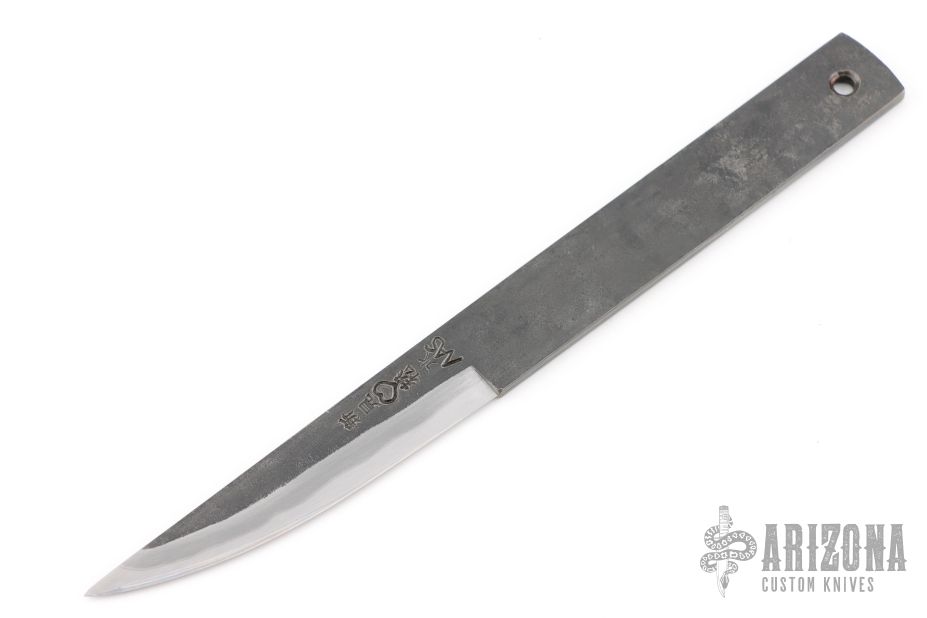 The Knife Japan is made to be used outside for work and inside for handicrafts. The blade is Stainless Clad Aogami Super Steel (NAS) which is a high-carbon steel alloy with stainless laminate and is ground on both sides, .111" blade stock and .678" blade depth. Comes with original box. New from maker!