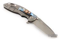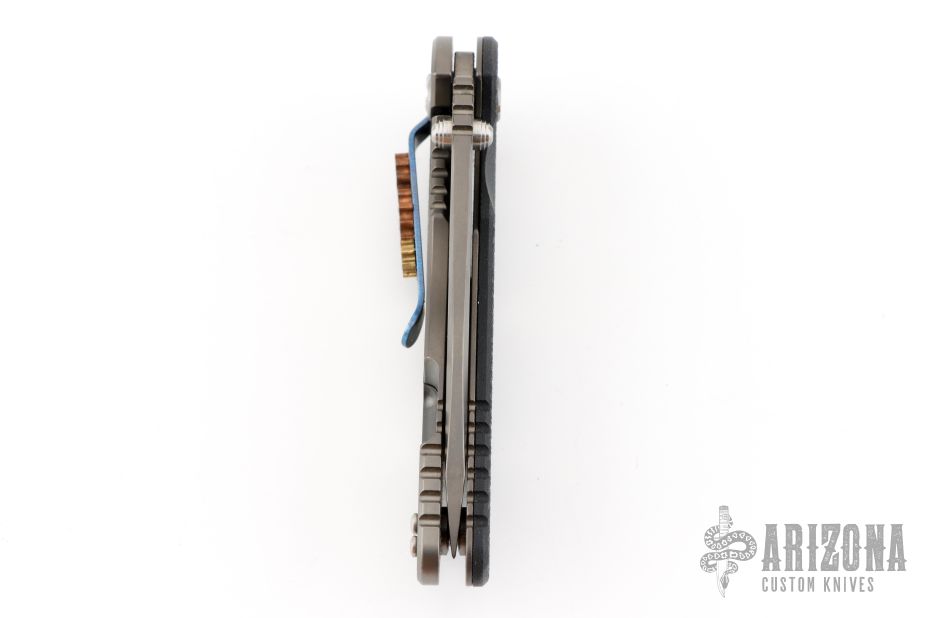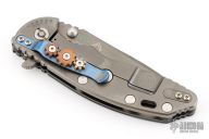 This XM-18 Sig Sauer Legion Knife by Hinderer Knives features a black DLC S35VN blade with dual thumbstuds, flipper and notched thumbrest. The handle has a black DLC titanium frame and liner with a textured black G-10 scale and Hinderer copper gears clip. Nice detent, lockup and blade seating. Has a couple light scuffs and scratches, great condition otherwise.