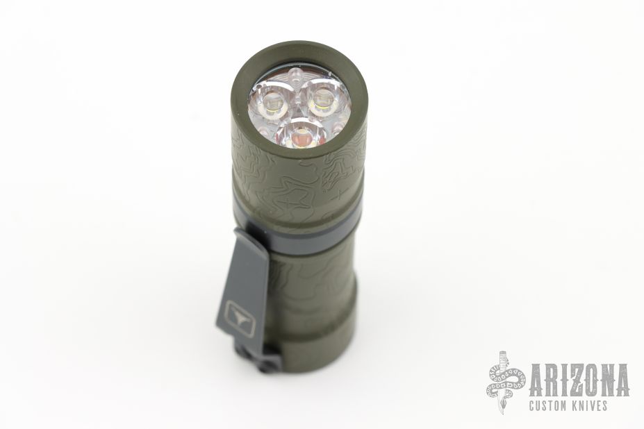 This compact single cell conservatively puts out over 1000 lumens on 'Turbo' mode, while 'Moon' mode will run for more than ten days on a single battery. Three high performance Cree XP-L HI 5K LEDs, nested into an aqua blue glow ring, deliver exceptional color rendition and night resolution.