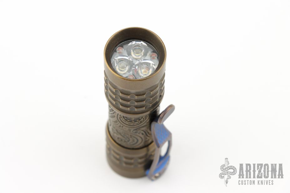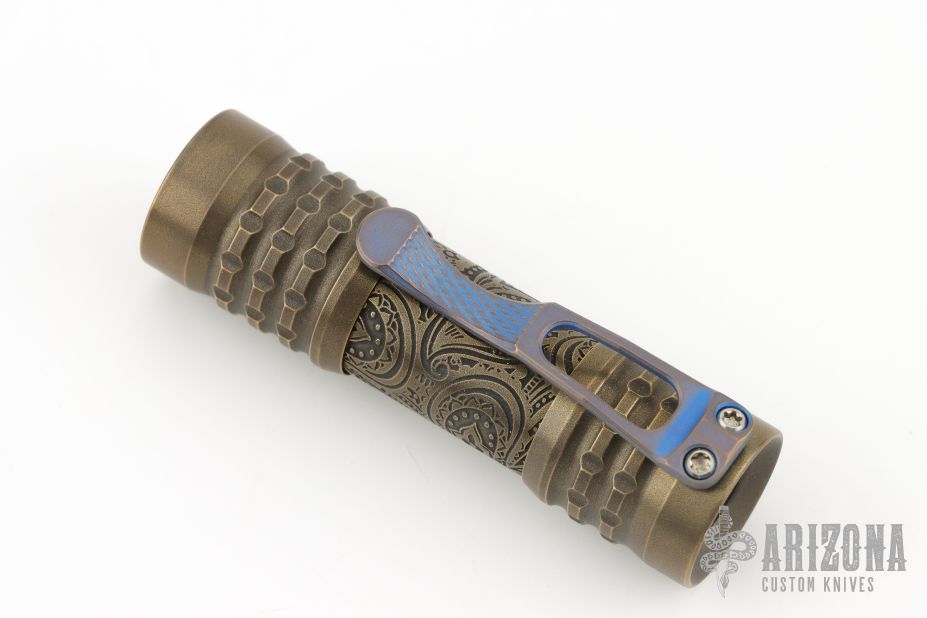 Ti2Design Brass Torch. Dragon Driver V3 - 219C 4000K - green Secondaries. Has some light scuffs and patina. Excellent condition.