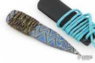 In 1988, he began making specialized knives for use by the military. This turned out to be fortunate turn of events, both for Mick and for the knife using world at large. Mick’s approach was to not get burdened by the weight of past designs. He started with a tabula rasa, a clean slate, informed only by his own experiences and knowledge of what a soldier needed in a knife. The knives he made didn’t look like the hunter-inspired knives seen in most PXs; instead they were almost brutish in their functionality: beefy, solid, and with unbreakable ¼” stock full tangs. These knives were the first indication of his innovative approach: in addition to their utilitarian design, the knives carried a subdued finish and subdued sheaths. No one carrying a Strider knife was going to be spotted because of sunlight glinting off of polished steel or a glossy leather sheath. Soldiers, policemen, and other men going into harm’s way couldn’t buy them fast enough. Mick sampled some good ideas, but made them great. For instance, he was not the first to wrap a knife handle with paracord, but he was the first to do it in a way that was tough enough for sustained infantry use. His knife line grew over the following years to include different varieties of fixed blades, all distinctive and many with specialized uses. But constant in all of them was a disregard for convention, and a desire to try new ideas. An example of this was the Ajax – it featured a very wide blade surface clearly designed to inflict damage. It drew on the weapons carried by Roman legionnaires, yet was modern and usable in the 21stCentury battlefield. Mick also worked on his technical skills, always striving to become better at the physical craft. At the 2002 Blade Show, a group of the best tactical knifemakers in the country decided to compete with each other to produce the most innovative and interesting fixed “battle blade” at the show. Mick’s entry, an incredible integral knife made out of ½” titanium stock with a zippered composite blade, gorgeous handles, and integral guard was the unanimous winner, and effectively retired the competition.