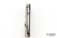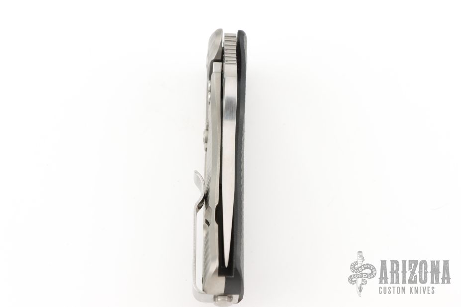 The Lil’ LionSpy’s two-piece handle construction consists of a black G-10 scale and a titanium scale that serves as the basis of the knife’s stout Reeve Integral Lock (R.I.L.) mechanism. Both scales are CNC machined with a series of textured grooves to ensure a positive grip and are joined by an open-backed design that reduces weight and simplifies cleaning. A compact pocket clip attached to the titanium scale supports right-side, tip-up orientation for convenient carry and easy access.