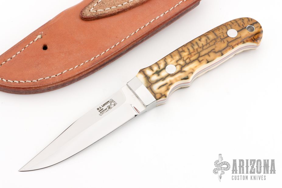Mike Lovett learned how to make his very first knife at age 6 or 7, and from that point on Mike made his spending money making and sharpening knives for other Scouts. In 1966 Mike saw his first Bob Loveless knife and he was hooked, and when he got out of the Air Force in 1975 he bought a square wheel grinder and the rest is history. Mike was fortunate to have many fine mentors along the way, including but not limited to, Bob Loveless, Jim Merritt, Buster Warenski, Harvey McBurnette, George Herron and Clay Gault. But he always likes to mention that most important of all is the core knife making philosophy he holds in common with Bob Loveless and Jim Merritt. And simply put that means a strong belief in the idea that since a knife is a tool designed to be used it must follow certain principles. A knife does have to be attractive enough for people to want to pick it up, but more importantly, it has to feel right in the hand, not only in one position but in all of the positions in which it is likely to be used. This is what Bob and Jim have spent countless hours working on with Mike. Going into great detail they have discussed and analyzed every curve, edge and contour on the Loveless knives, as well as the reasons for each and every one of them. They have also supplied Mike with steel, tools and even permission to use a version of the Loveless Logo - with the name changed to Lovett of course. Through all of this contact and coaching Mike has learned how to make the Loveless knife correctly, learning in the process that it's not enough to emulate them, you have to know and understand all of the ins and outs of the design. A copier or a counterfeiter simply cannot accomplish this to the proper degree, and this is what separates the Lovett-Loveless connection from all the rest.