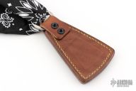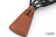 The Cowbell Sap is RMJ's take on the bandana sap. The Cowbell keeps your bandana or handkerchief handy, and sitting at the end of your bandana, is the perfect way to ring a bell! This Slugshot variation features black leather with contrasting red stitching and a bandana for some extra leverage. Constructed from cowhide with a lead core. Thick enough to lay on a wallop, and easy to carry. Monkey Edge Exclusive.