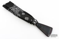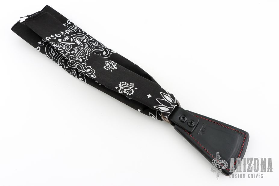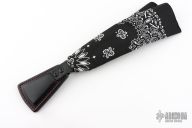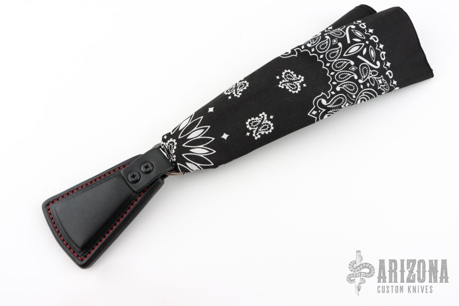 The Cowbell Sap is RMJ's take on the bandana sap. The Cowbell keeps your bandana or handkerchief handy, and sitting at the end of your bandana, is the perfect way to ring a bell! This Slugshot variation features black leather with contrasting red stitching and a bandana for some extra leverage. Constructed from cowhide with a lead core. Thick enough to lay on a wallop, and easy to carry. Monkey Edge Exclusive.
