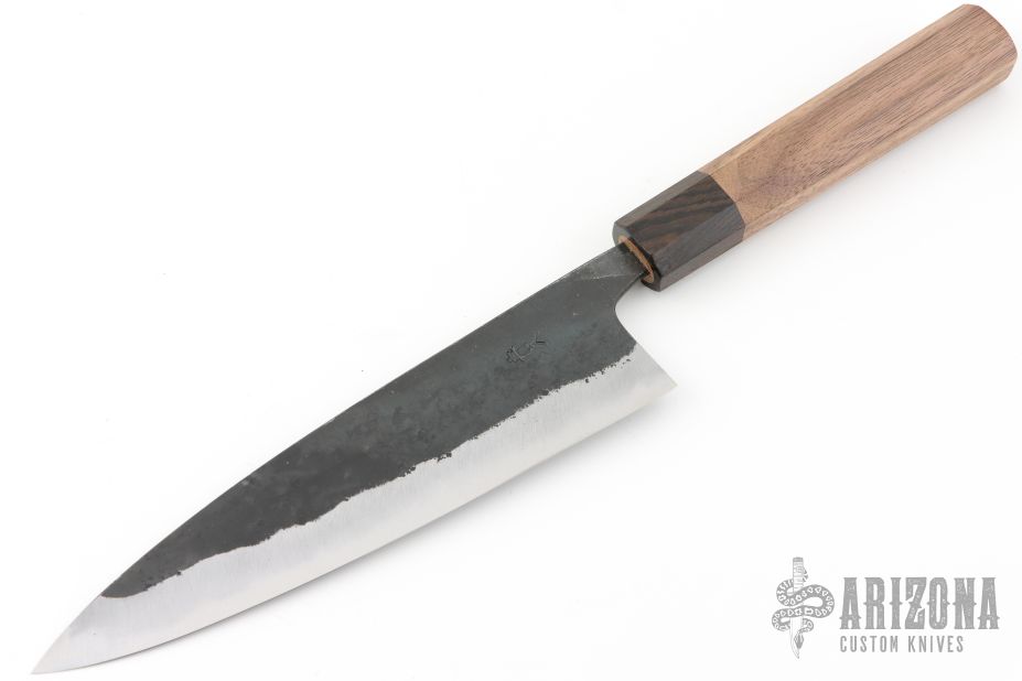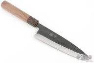 Originally a Western meat knife, it’s also used for fish and vegetables due to its versatility. Its long blade is favored by professionals but can still be used by casuals and cooking enthusiasts. Its double-bevel blade is a fine choice for both right and left-handed people.