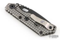 This MS SNG framelock folder by Mick Strider features a black blade and a MEFP titanium frame and tip up titanium clip. Includes Hinderer "Lock Bar Stabilizer" for maximum reverse lock retention. Nice detent, lockup and blade seating. Excellent condition.
