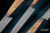 Santiago Abud began his journey as a knife maker at age 19 when, thanks to a friend in the United States, he was able to obtain a video by renowned master knife maker Bill Moran. In it, he discovered the teachings that would mark the beginning of his passion for crafting artisan knives. Over the years, he also trained as a jeweler, which allowed him to apply his knowledge of metalworking and design techniques to the creation of highly precise and beautiful knives. For years, he worked part-time as a knife maker, honing his skills and developing his own style. However, the arrival of the pandemic gave him the opportunity to fully dedicate himself to his art. With vast experience and a renewed focus, he set up his workshop in the town of Sierra de los Padres, Buenos Aires Province, Argentina in 2020, where he specialized in creating artistic knives using Damascus steel, a technique that allows him to merge functionality and aesthetics into unique pieces. Today, he is recognized for the quality, originality, and impeccable workmanship of his knives, which reflect the passion and dedication with which he continues to forge his path as a professional knife maker. This summary highlights his evolution from his beginnings to becoming an artistic knife specialist, highlighting his self-taught approach and the influence of his training as a jeweler. A member of the American Bladesmith Society since 2006, he is preparing to earn his Journeyman Smith certification in June 2026.