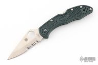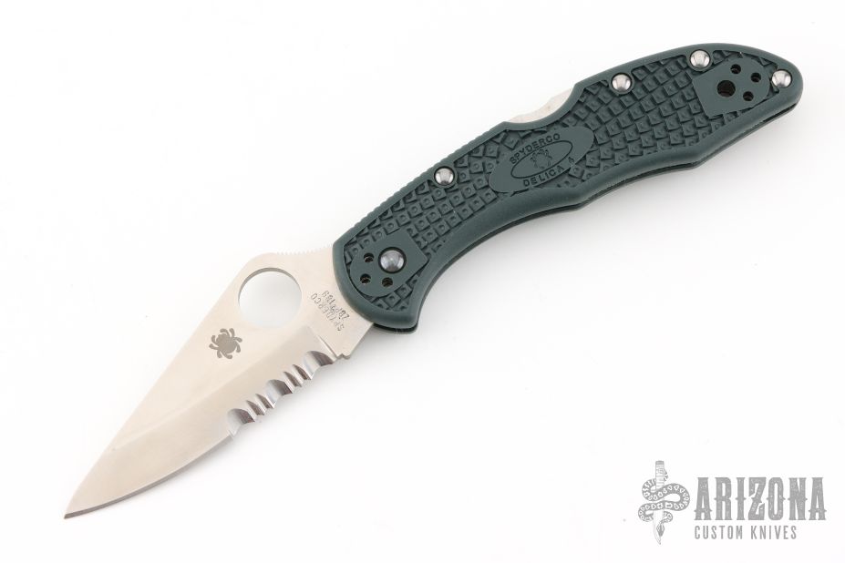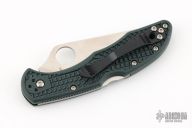 This Spyderco Delica 4 knife has a British Racing Green FRN handle and a premium ZDP-189 stainless steel blade.