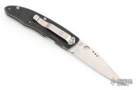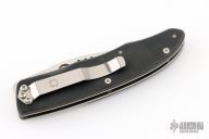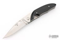 This Howard Viele designed Spyderco features a satin finished blade with notched thumbrest and thumbhole. Polished black micarta scales with stainless liners. Tip down stainless steel clip. Excellent condition.  Comes with original box and papers.