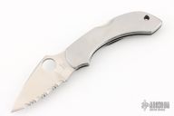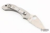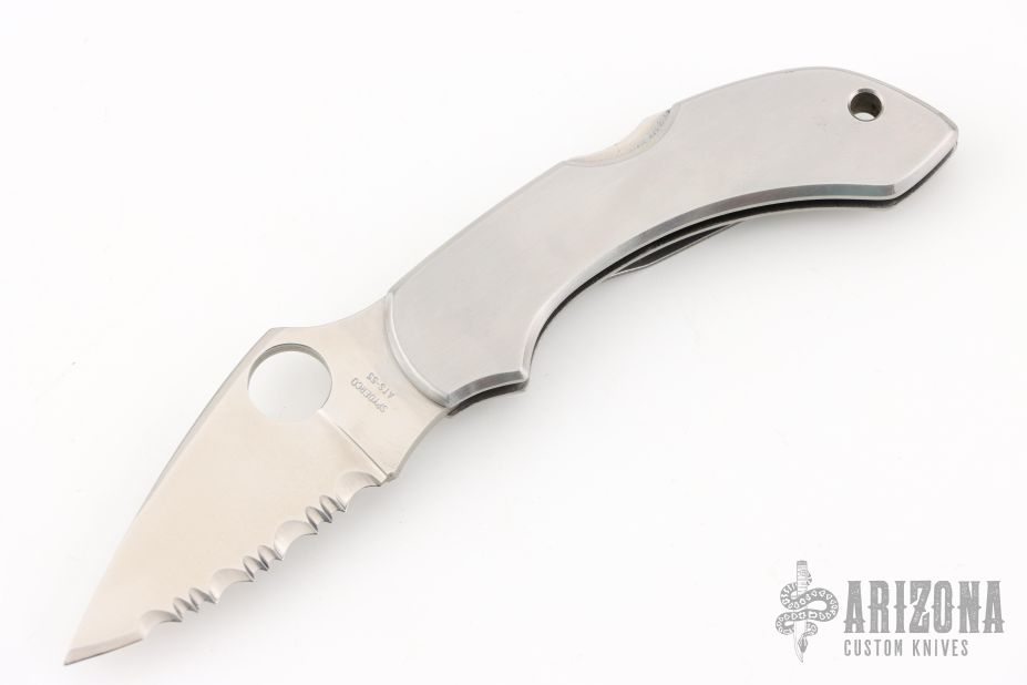 This Dragonfly Lock Back folder by Spyderco features a satin finished blade with thumbhole. The handle is stainless steel with lanyard hole in pommel. Has a couple light scratches, excellent condition otherwise. Coems with original box.